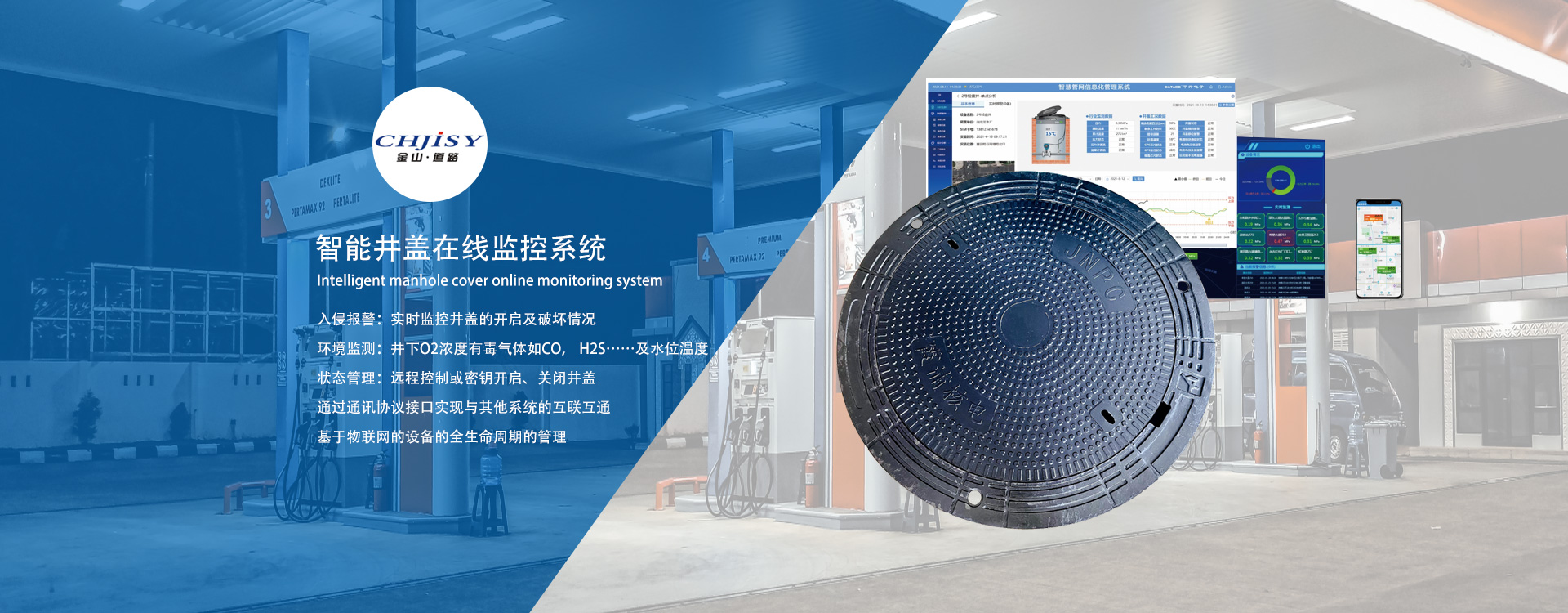 浙江金山道路設施有限公司,位于浙江省樂清市翁垟街道海嶼金山工業園萬翁中路882號。本公司成立于2002年,經過十幾年的發展,現已初具規模。目前公司占地12畝,生產、生活用房2900M2,注冊資金528萬元,固定資產2000多萬元,年生產量2123萬多元。公司員工58人,其中中、高級技術人員8人。公司擁有全自動的SMC材料生產機組,配有大、中型多臺液壓機及檢測維修設備。生產成品有BMC復合材料井蓋、水箅系列,SMC復合材料井蓋、水箅系列,球墨鑄鐵復合材料井蓋、水箅系列等一百多種規格型號產品,基本能滿足國內石油化工工程配套、市政道路建設、電力電信等工程所需用的各類復合材料產品。公司曾是2009年度中石化入圍供應商。